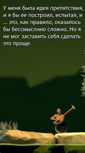 Getting Over It es un juego inusual para Android en el que debes controlar a un personaje que está en una olla. Usando un mazo, tendrás que hacer cosas simplemente locas: agarrarte a varias repisas y saltar para subir a la cima. Tarea del jugador y dificultad de paso Dado que la conexión con el terreno es muy inestable, es necesario calcular cada movimiento manteniendo el equilibrio con el suelo. Aquí es donde radica toda la complejidad del juego y, por primera vez, puede que no te resulte fácil hacerlo.