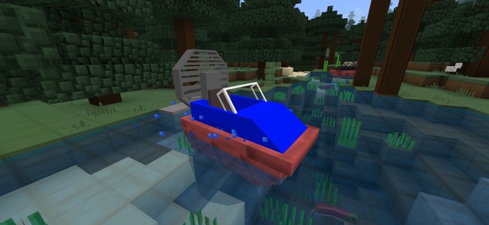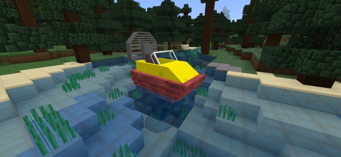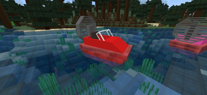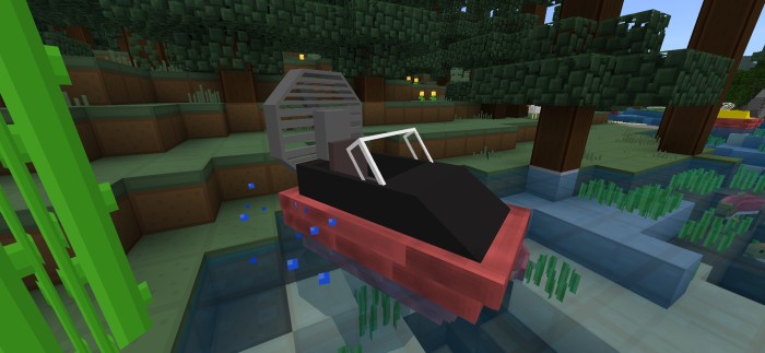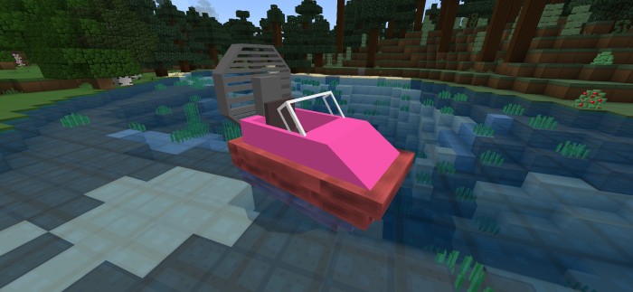 Mod Aerodeslizador es un complemento de transporte que introduce un transporte muy no estándar en el mundo del juego Minecraft. Tendrás la suerte de montar en un barco equipado con un colchón de aire y grandes aspas. La característica principal de este tipo de transporte es que puede moverse tanto en la superficie del agua como en la superficie de la tierra, lo que aumenta aún más la velocidad de movimiento de tu héroe.