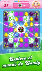- Caramelo rayado: Se crea con cuatro caramelos en fila y, al activarse, destruye toda una fila horizontal o vertical.