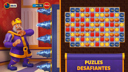 El juego para Android Royal Match te invita al fascinante mundo de las combinaciones y los acertijos. Únete al rey Robert en su búsqueda para decorar su castillo real con sofisticación.
