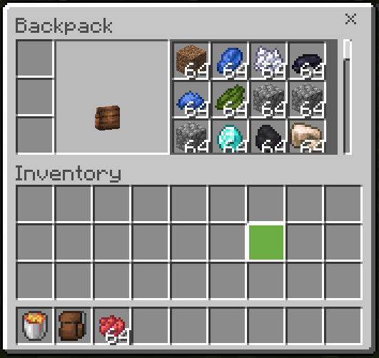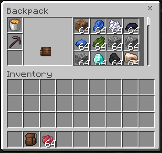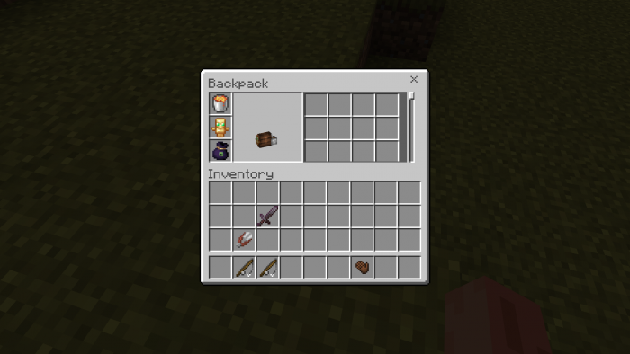 El complemento también incluye mochilas especializadas que se pueden crear a partir de Droplet, Hay, Netherite y Pumpkin.