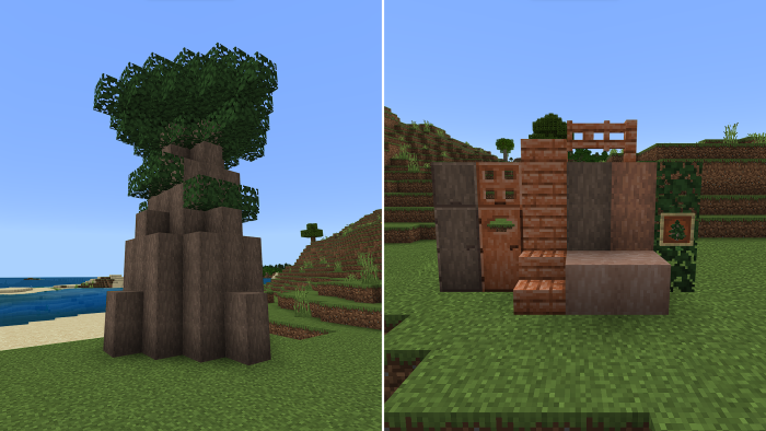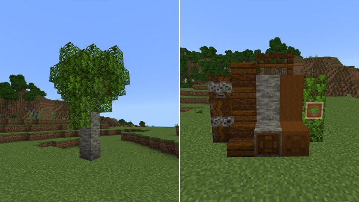 Mod Natura: Regrown es una adición bastante conocida para la versión Java del juego Minecraft, que ofrece a los jugadores nuevas opciones para madera, piedra y objetos hechos de este material. Además de la apariencia de las especies de madera originales, el ensamblaje recupera versiones clásicas de materiales.