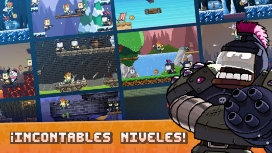 Al comienzo del juego, podrás elegir con qué personaje jugarás: Dan, Josie, Barry… Al mismo tiempo, habrá información de que durante el trayecto podrás cambiarlo. Además, más adelante se desbloqueará un héroe gratuito, que podrás cambiar según tus preferencias. Otros héroes inusuales se desbloquearán con monedas, incluidos, por ejemplo, un robot, una rana, un pirata, un caballero y otros.