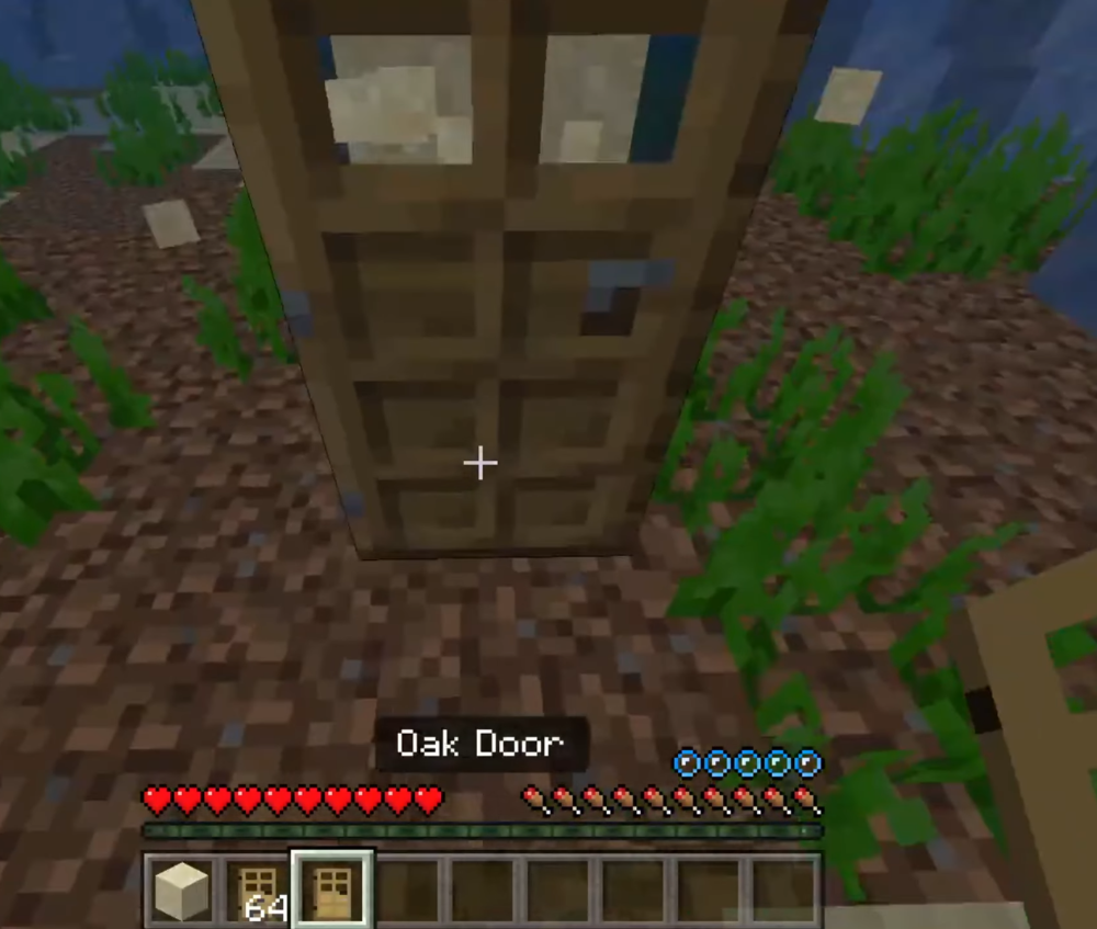 Cuando estás en el fondo de un río, lago u océano y tu oxígeno se está agotando rápidamente, solo necesitas colocar una puerta en cualquier bloque sólido. Alrededor de ella se formará instantáneamente un bolsillo de aire de dos bloques de altura. Puedes entrar en este espacio, abrir o cerrar la puerta, y tu barra de respiración se restaurará en cuestión de segundos.