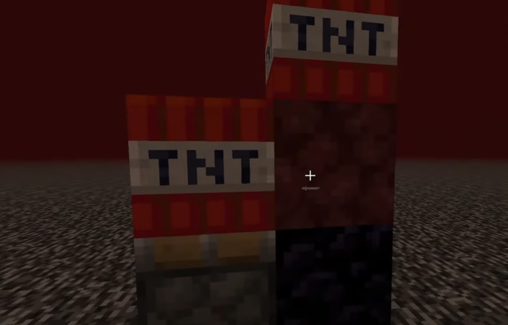Asegúrate de llevar armadura de diamante o netherita. Es recomendable usar encantamientos de protección contra explosiones. Estarás en el epicentro de la detonación de dos bloques de TNT. Sin un equipo confiable, esta explosión será mortal.
