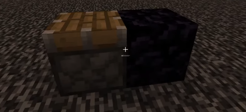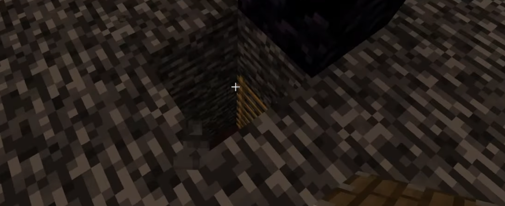 Encuentra el bloque de bedrock necesario en el techo (generalmente en la capa Y=127). Memoriza este bloque. Coloca un bloque de netherrack debajo de él. A la derecha del netherrack, coloca un bloque de obsidiana. Ahora rompe el netherrack y coloca el primer pistón en su lugar. Debe estar orientado hacia arriba y apuntando directamente al bedrock objetivo.