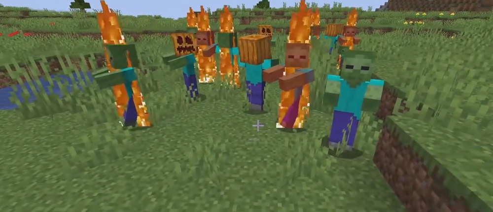 La mecánica principal del evento de Halloween es simple pero increíblemente encantadora. Si entras al juego el 31 de octubre, notarás cambios extraños en el comportamiento de los mobs hostiles. Zombis, esqueletos, creepers y otras criaturas comienzan a aparecer con calabazas talladas o linternas de Jack iluminadas en sus cabezas. Esto no solo hace que las incursiones nocturnas sean más atmosféricas, sino que también tiene un beneficio práctico.