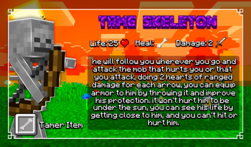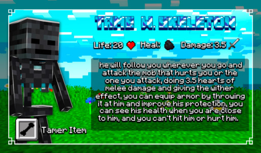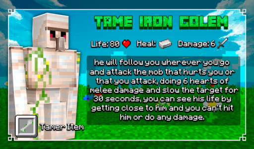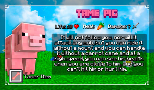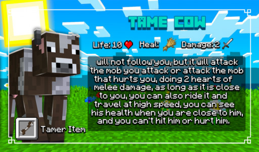 El mod Tame todas las turbas para Minecraft te permite domar a las turbas que inicialmente no están dispuestas a esto. Lo más probable es que algunos usuarios hayan pensado en tales oportunidades antes, ya que algunos habitantes podrían ser de gran beneficio con sus cualidades. Por ejemplo, para estar protegido de los enemigos. Gracias a esta adición, puedes organizar todo un equipo de monstruos.