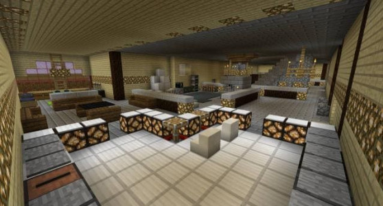 Si te gusta el entorno de la película "The Great Gatsby", entonces el edificio Agradable casa 2 para Minecraft corresponde completamente a la atmósfera de esta imagen. La mansión es realmente enorme e incluye muchas habitaciones para diferentes propósitos, un hermoso diseño decorado con ladrillos y pisos de madera, e incluso alguna automatización de elementos.