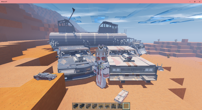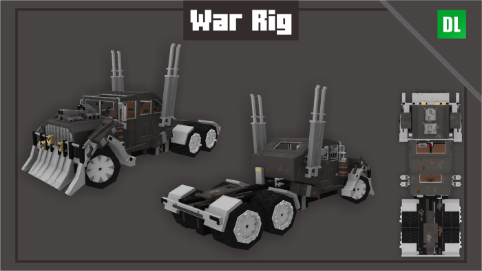 Le mod Machines de Mad Max est un assemblage coloré qui ajoute à Minecraft les modèles de voitures les plus populaires présentés dans le film Mad Max: Fury Road. L'assemblage comprend 4 modèles de voitures, ainsi que leurs modèles compacts, qui s'obtiennent en entrant des commandes dans la fenêtre de discussion. Les commandes d'invocation sont présentées ci-dessous.