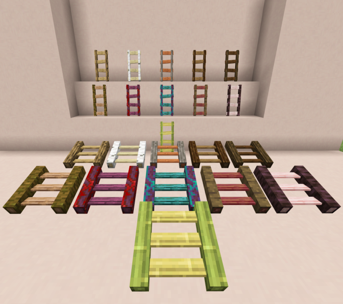 Mod Meubles rustiques en bois est un assemblage de meubles destiné aux joueurs de Minecraft qui apprécient la beauté, la praticité et la fonctionnalité. L'addon ajoute divers meubles en bois qui deviendront une belle décoration pour n'importe quel espace. L'ensemble contient des planches ordinaires, des bancs, des tables, des échelles et d'autres objets en bois.