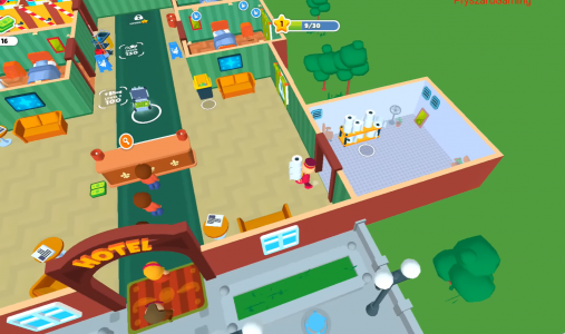 My Perfect Hotel plonge littéralement le joueur dans un processus de développement sans fin. La vue de dessus permet de suivre chaque détail du bâtiment, et les couleurs vives s'intègrent parfaitement à la structure du gameplay.