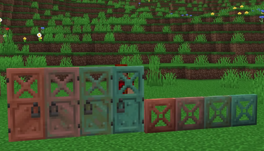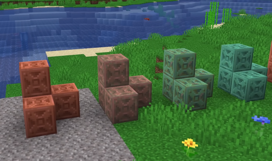 En plus de l'ajout de nouveaux blocs, les objets en cuivre ont reçu une variété d'options externes via des changements d'état d'oxydation, ainsi que des options recouvertes de cire.
