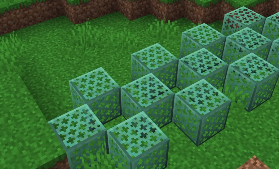 - Treillis – laisse passer l’air et la lumière, ne laisse pas passer les signaux de redstone et l’apparition de créatures hostiles n’est pas possible.