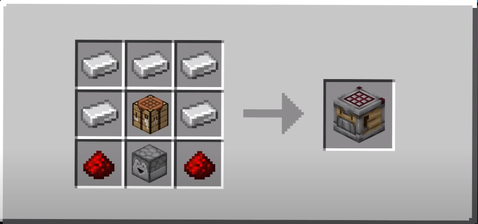 - Notification – tout résultat de travail (réussi ou non) est accompagné d'un signal sonore. Le Crafter peut également être combiné avec le Comparator pour produire un signal correspondant, qui dépendra des slots que vous aurez configurés.