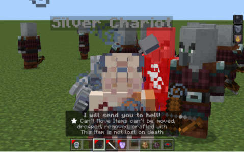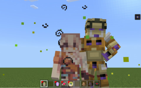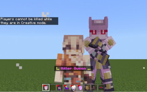 La base de la création de la modification L'aventure bizarre de JoJo est le manga légendaire, qui a acquis une énorme popularité dans la communauté Anime. Un grand nombre de héros et de personnages du récit ci-dessus seront désormais disponibles pour être utilisés dans le monde de Minecraft. Vous aurez la possibilité de faire apparaître des stands de personnages qui vous protégeront des autres joueurs. Et la variété des héros dotés de capacités différentes ajoute de la variété au gameplay.