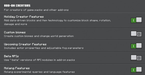 Pour que le mod fonctionne, vous devez activer les options expérimentales dans les paramètres de la carte.