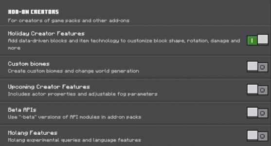 Pour que le mod fonctionne, vous devez activer les options expérimentales dans les paramètres de la carte.