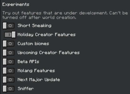 Pour que le mod fonctionne, vous devez activer les options expérimentales dans les paramètres de la carte.