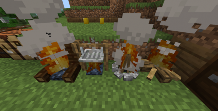 वे Minecraft में क्लासिक आग के संशोधित रूप हैं। कैम्प फायर का लेआउट खाना पकाने की गति को प्रभावित करेगा। आप एक ही किस्म के मांस के 4 टुकड़े तक भून सकते हैं।