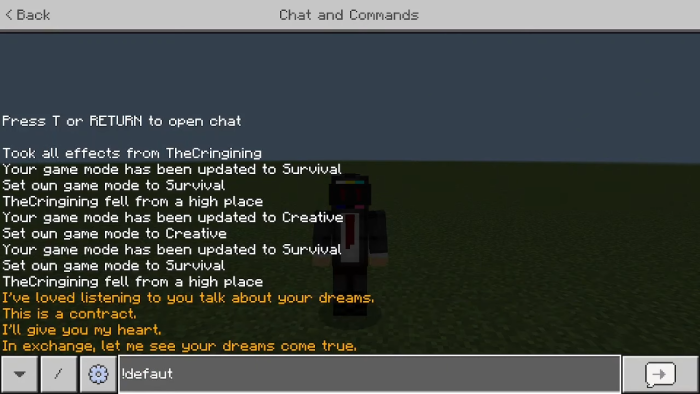 मानव रूप में परिवर्तित होने के लिए, आपको निम्न कमांड दिखाई देती है - !default.
