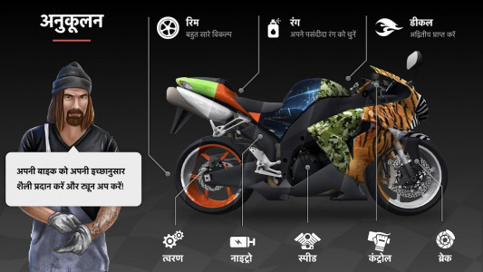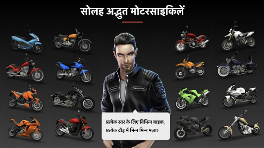 गेम में प्रस्तुत मोटरसाइकिलों को उच्च स्तर के यथार्थवाद के साथ तैयार किया गया है। 16 अलग-अलग मोटरसाइकिलें आपका इंतजार कर रही हैं, जिनमें से प्रत्येक विवरण पर सबसे छोटे विवरण पर काम किया गया है। अपना आदर्श विकल्प चुनें और उसकी विशेषताओं में सुधार करें।