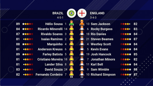 टीम के खिलाड़ियों के नाम वास्तविक फुटबॉल खिलाड़ियों के नाम से मेल खाते हैं, जिससे गेमप्ले में तल्लीनता का स्तर बढ़ जाता है। रचना स्वतंत्र रूप से बनाई जा सकती है।