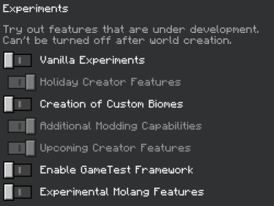 काम करने के लिए मॉड के लिए, आपको मैप सेटिंग में प्रायोगिक विकल्पों को सक्षम करना होगा