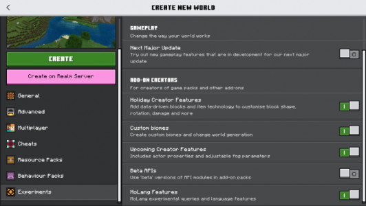 काम करने के लिए मॉड के लिए, आपको मैप सेटिंग में प्रायोगिक विकल्पों को सक्षम करना होगा