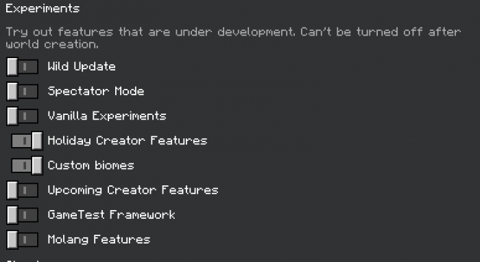काम करने के लिए मॉड के लिए, आपको मैप सेटिंग में प्रायोगिक विकल्पों को सक्षम करना होगा