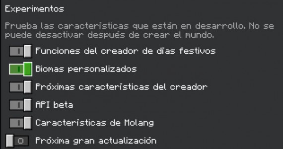 काम करने के लिए मॉड के लिए, आपको मैप सेटिंग में प्रायोगिक विकल्पों को सक्षम करना होगा