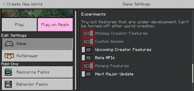काम करने के लिए मॉड के लिए, आपको मैप सेटिंग में प्रायोगिक विकल्पों को सक्षम करना होगा