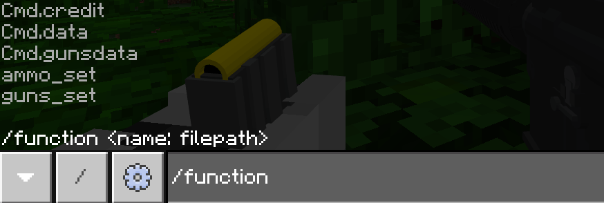 - आप यह भी टाइप कर सकते हैं: /function guns_set एक हथियार प्राप्त करने के लिए।