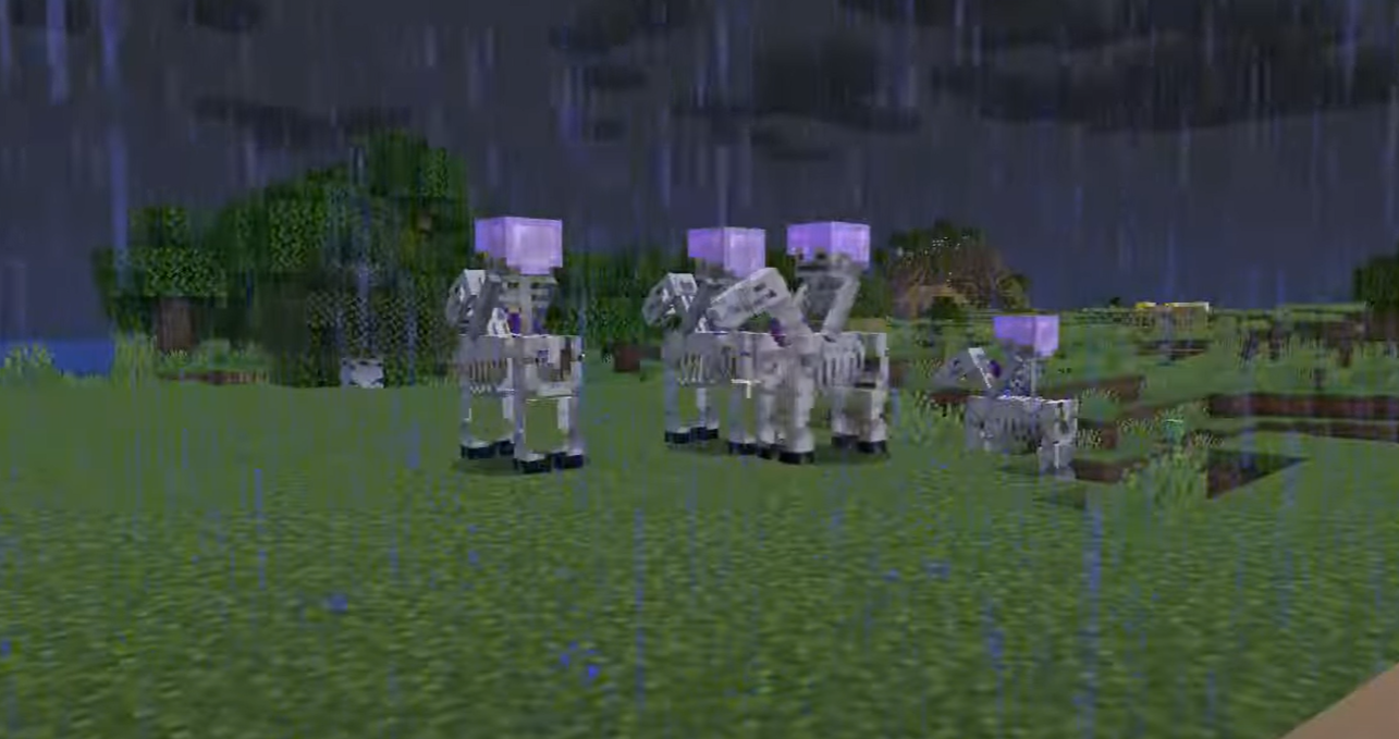 I cavalli scheletrici sono tra le creature più insolite che si possono incontrare in Minecraft 1.21. Questi esseri non viventi appaiono a seguito di un fulmine, accompagnati dai loro cavalieri. Per renderli obbedienti al giocatore, è necessario uccidere prima il cavaliere.