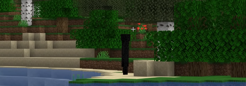 Le mani mi prudono per digitare il comando: /summon enderman ~ ~ ~ {NoAI:1b}. Appare il nostro amico altissimo. Sta lì, immobile, non guarda, non si preoccupa — come se avesse superato l'esame di «statua più noiosa dell'anno». Lo guardo e, onestamente, che vista insolita! Nessuna eccitazione tipica dell'enderman: non si muove, non si spaventa, non reagisce nemmeno allo sguardo. Eppure qualcosa mi dice che ci sarà un colpo di scena.