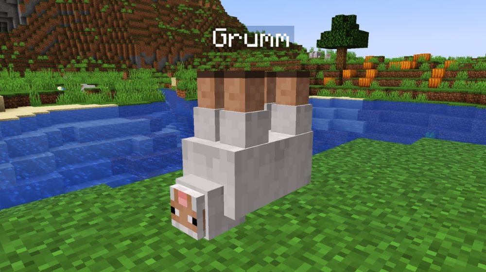 La meccanica di questo easter egg è semplice ma geniale: se si utilizza un'etichetta (Name Tag) con il nome "Dinnerbone" o "Grumm" su qualsiasi mob, il modello della creatura viene capovolto.