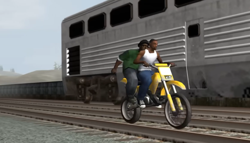 Nel gioco c'è una missione chiamata «Wrong Side of the Tracks» (Il lato sbagliato dei binari). In questa missione, il protagonista Carl Johnson, meglio conosciuto come CJ, e il suo partner Big Smoke inseguono membri di una gang nemica che si trovano sul tetto di un treno in movimento. Il giocatore deve controllare una moto da cross e guidare parallelamente al treno mentre Big Smoke spara ai nemici.