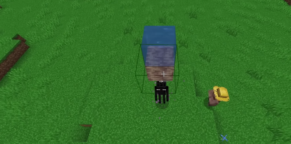 이 순간 살짝 속은 기분이 들었어요. 쇼를 기대했는데, 스파에서 힐링 중인 듯 물방울 아래 서 있는 평온한 몹이라니! 드라마는 어디에? 물 공포는? 바닥에 젖은 얼룩이 좀 생겼을 뿐, 엔더맨은 솔직히 신경도 안 썼습니다.