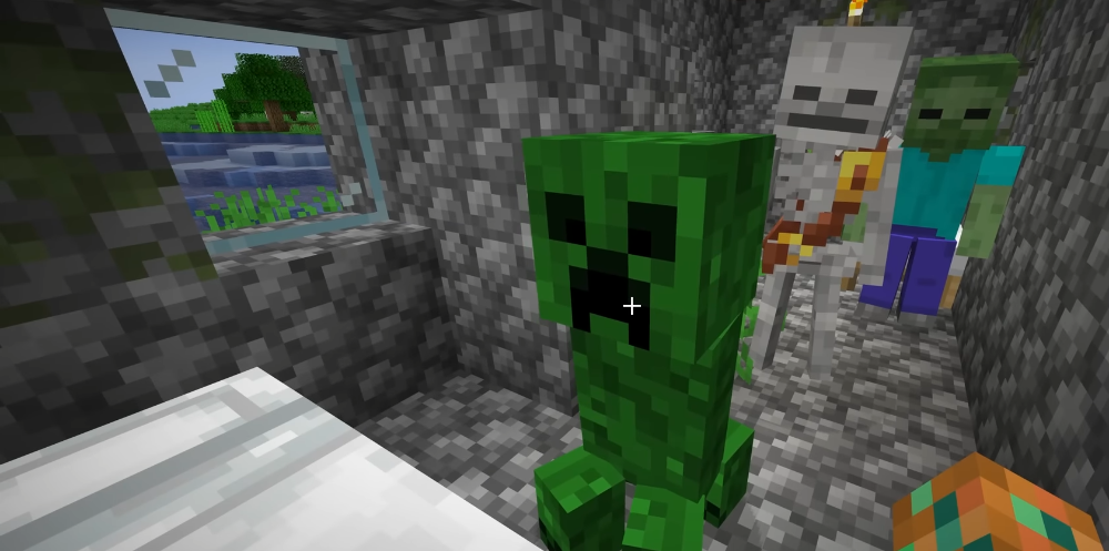 명령어는 대략 이렇게 생겼습니다: /summon zombie ~ ~ ~ {NoAI:1b}. 한 번 클릭하면 좀비가 나타나고, 그저 멍하니 허공을 바라봅니다. 저는 이 작업을 여러 번 반복하여 좀비, 스켈레톤, 크리퍼로 이루어진 군대를 만들었습니다. 방은 몬스터로 가득 찼지만, 죽은 듯한 침묵이 감돌았습니다. 제 가설을 테스트하기에 완벽한 조건이었습니다.