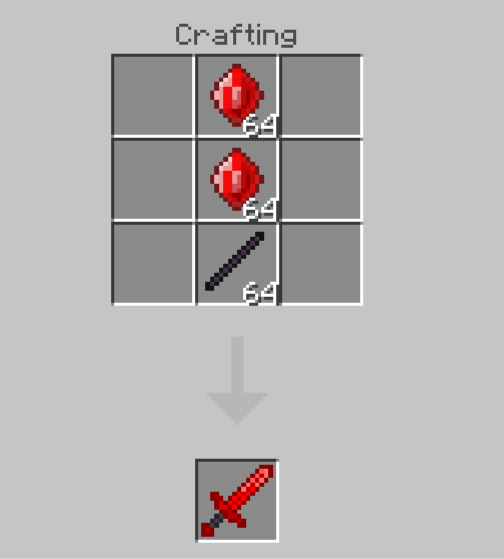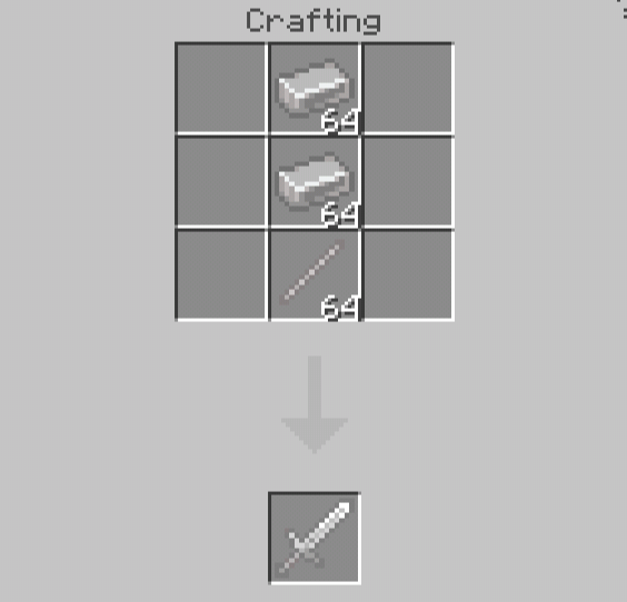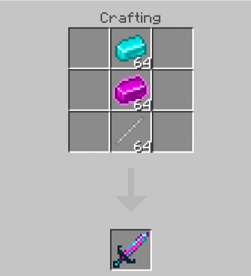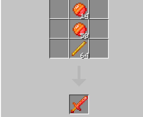 아래는 검을 제작하고 그 위에 재료를 바꾸는 레시피입니다.