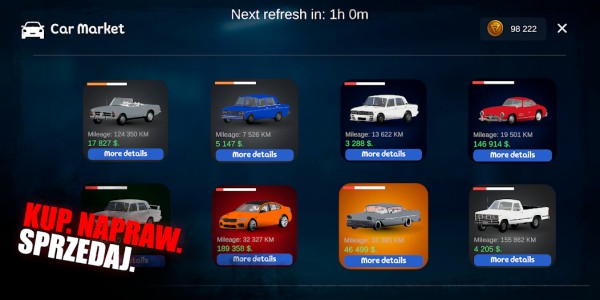 Pchle targi i złomowiska stają się twoimi najlepszymi przyjaciółmi. Tutaj obowiązuje zasada "śmieci jednego człowieka to skarb drugiego". Stary silnik z wycofanego z użytku samochodu sportowego może stać się sercem twojego nowego arcydzieła. My Favorite Car 2: Mechanic wyróżnia się wśród symulatorów niesamowitą dbałością o szczegóły. Dynamiczny system pogodowy wpływa na sprzedaż (kabriolety są droższe latem), cykle ekonomiczne zmieniają popyt na określone klasy samochodów, a sezonowość dyktuje zasady rynku.