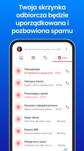 - Automatyczna blokada spamu: System sam filtruje i blokuje połączenia oraz SMS-y od znanych oszustów i reklamodawców.