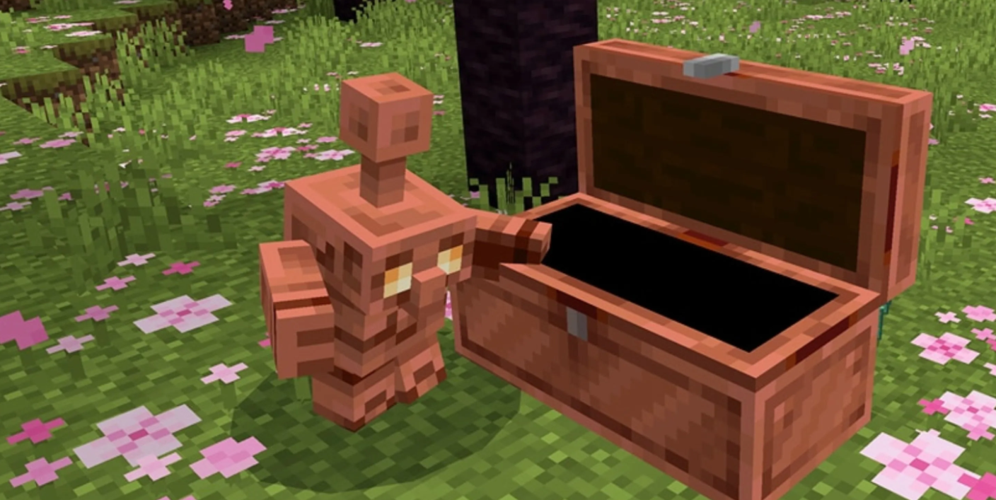 Wraz z golemem pojawiły się również miedziane skrzynie. Służą one do przechowywania zebranych zasobów, ale mają jedną ważną cechę — z czasem ulegają utlenieniu.