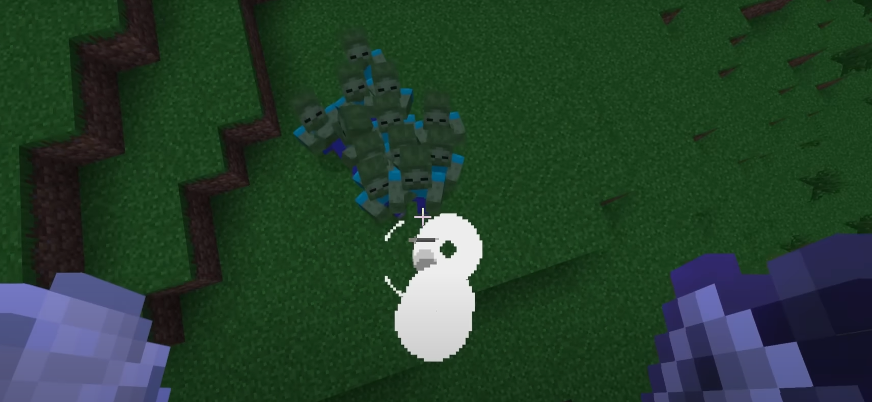 - 6–8 bloków: To było coś! Cios — tłum się rozprasza, creepery pękają, szkielety nie wytrzymują — czysta fiesta!