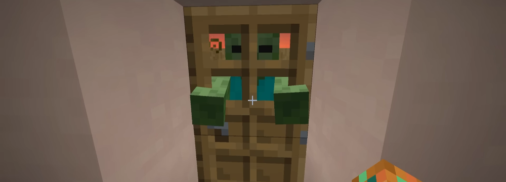 Zombi kontra drzwi z efektem „Zmęczenie III” w Minecraft