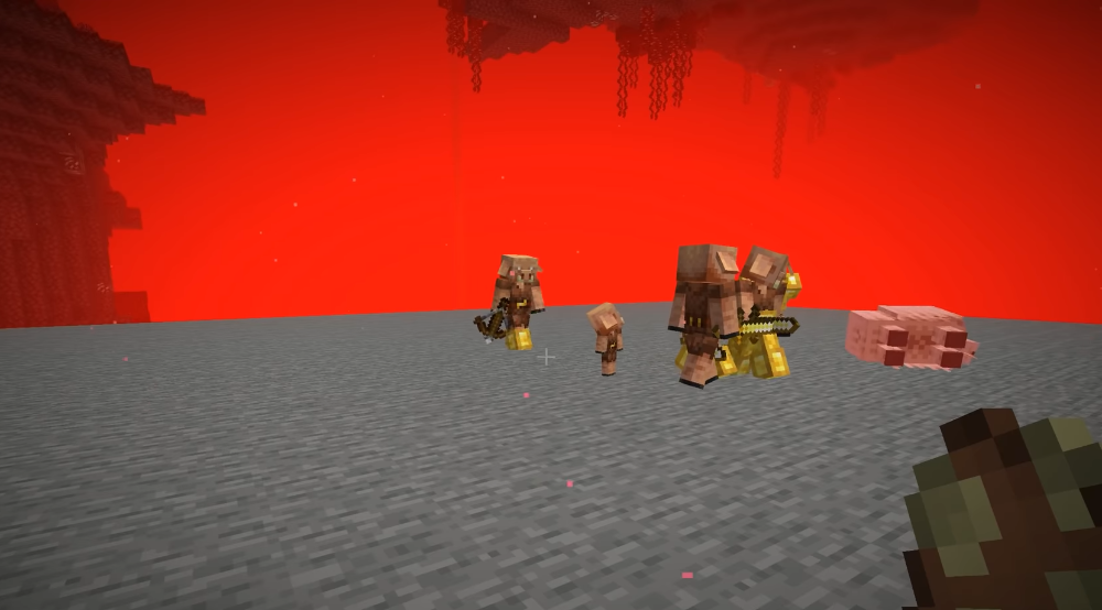 Pigliny, jak przystało na prawdziwych gangsterów, interesowały się wyłącznie złotem. Zwabiałem je do zagrody w karmazynowym lesie, a one patrzyły na mnie z miną: «Żartujesz? Jesteśmy elitą Netheru!». Ale kilka sztabek złota i już zebrała się porządna banda, czekająca na show.
