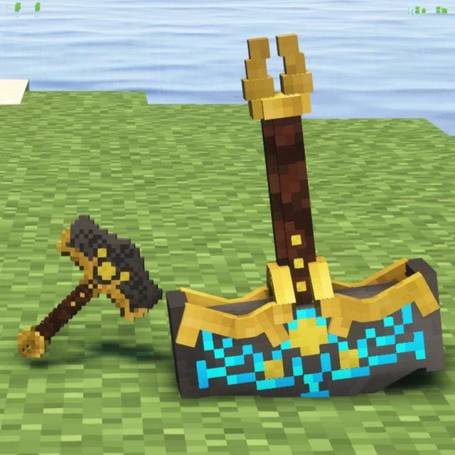 As texturas Leviathan Axe & Mjolnir são outra oportunidade de se sentir como o personagem principal de God of War no Minecraft. E se as peles de Kratos e Atreus forem abundantes, pode haver problemas com as armas. As texturas permitem que você mude a aparência de suas armas, que podem ser transformadas em um machado de gelo "Leviatã" ou em um martelo devastador "Mjolnir". Para que as texturas funcionem corretamente, você precisa se armar com um Tridente encantado com “ Lealdade ”, para que a arma volte para as mãos conforme pretendido na fonte original.