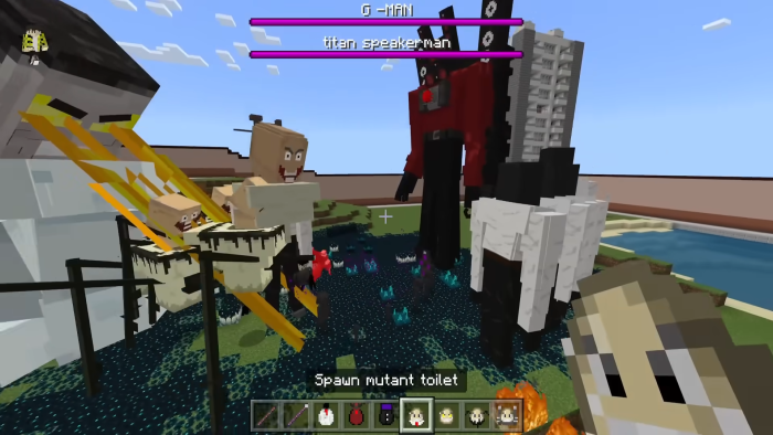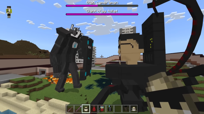 O Mod Skibidi Toilet vs Cameraman 2 para Minecraft mergulhará seus participantes em um frenesi emocionante, que será dominado por personagens do Skibidi Toilet. Você tem que ficar do lado da resistência e lutar contra os heróis despretensiosos desta comédia popular. A montagem adiciona mais de 30 chefes, diferindo em força, saúde e habilidades usadas.