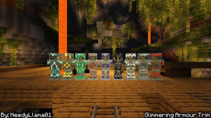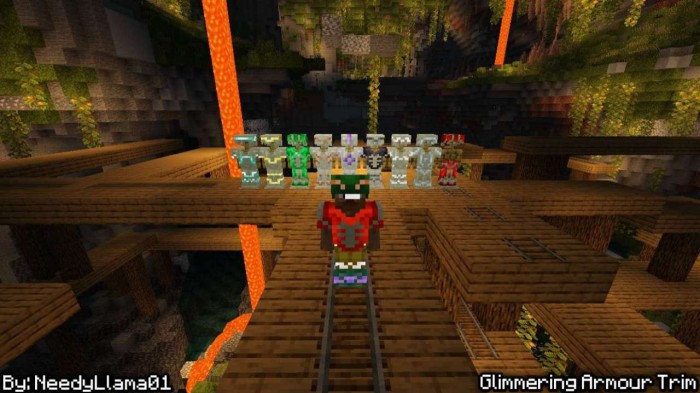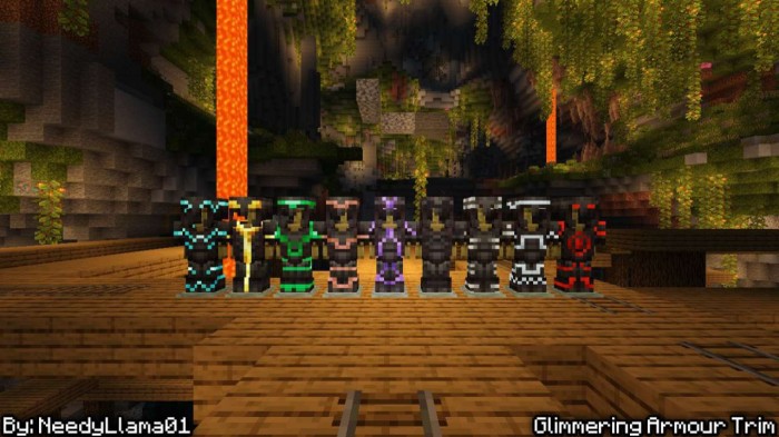 As texturas Padrões de armaduras iluminadas são a melhor maneira de ser o mais visível no mundo do Minecraft. Não é segredo que recentemente vários padrões aplicados a equipamentos apareceram no jogo. Mas há uma oportunidade de tornar a armadura ainda mais legal e brilhante. Essas texturas iluminarão esses padrões com luz LED brilhante, resultando em seu herói se tornando o personagem mais elegante e visível.