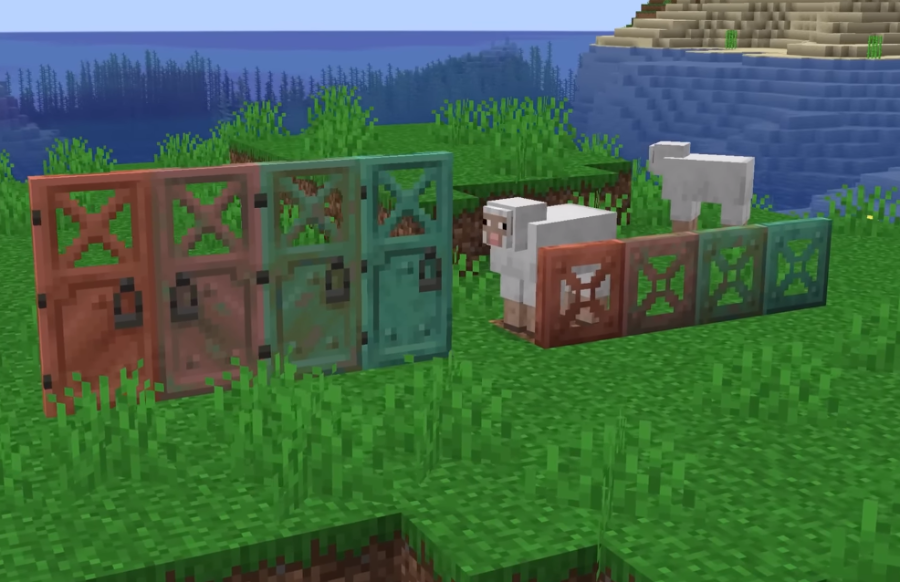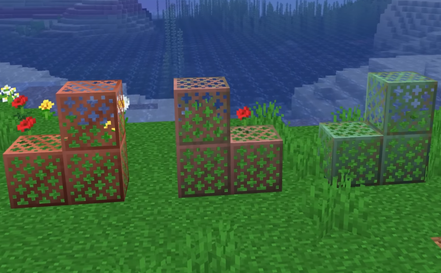 - Lâmpada de cobre (é uma fonte de luz, escurece com aparência de óxido, controlada por Redstone);
